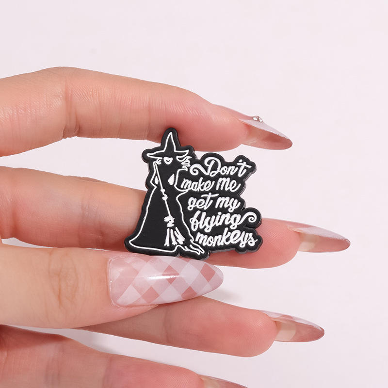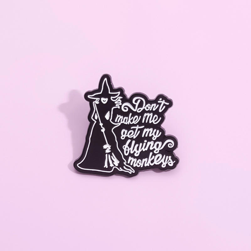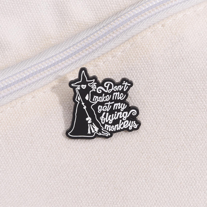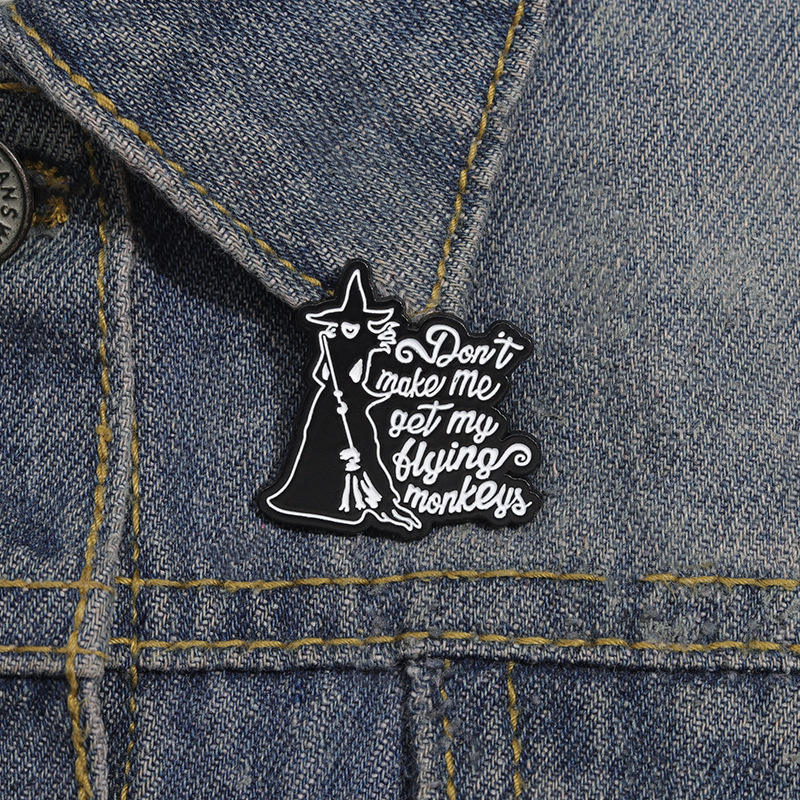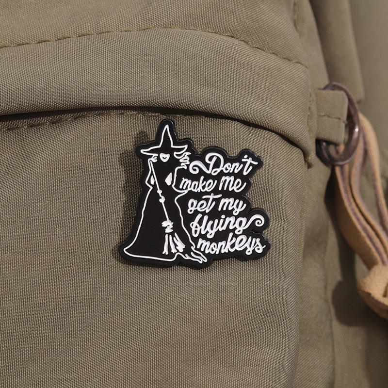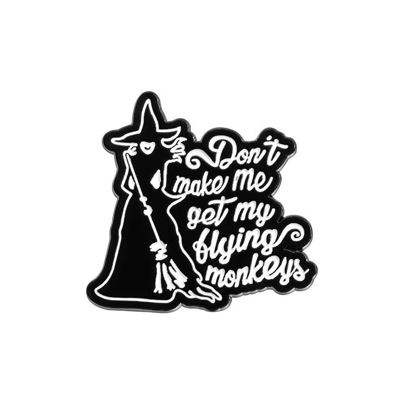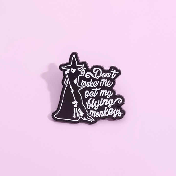 Pin de Esmalte de Bruja con la Leyenda 'No Me Hagas Llevar a Mis Monos Voladores', Broche de Brujería, Insignias Metálicas de Magia de Brujas, Pins de Halloween