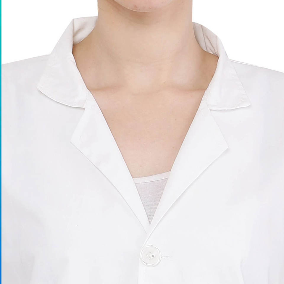 Bata de laboratorio estilo médico con botones frontales y bolsillo en el pecho para trabajadores de la salud Bata de laboratorio de grado hospitalario