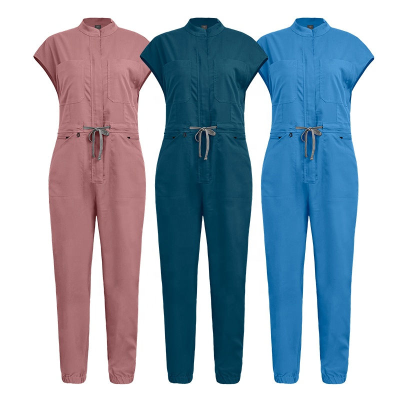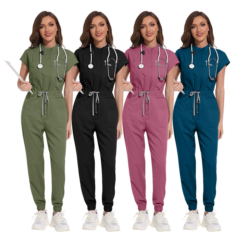 Doctor Mujeres Scrub Set Manga corta Moda Cremallera Diseño Enfermería Uniforme Conjuntos Médico Dental Enfermera Traje