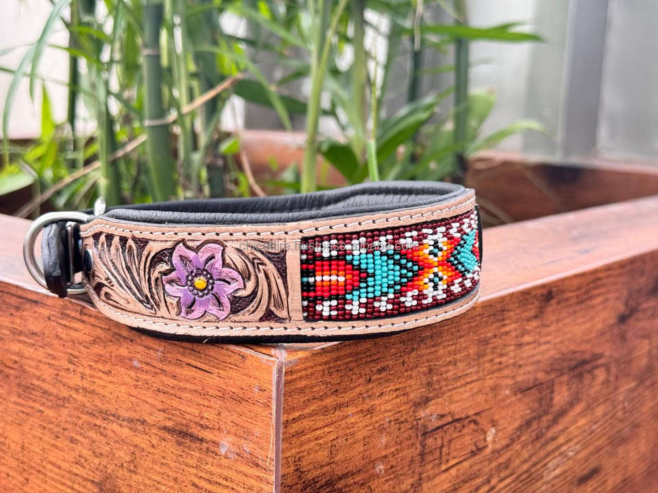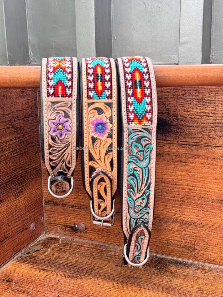 Nombre del producto:Collar de perro con cuentas de cuero mecanizada a mano