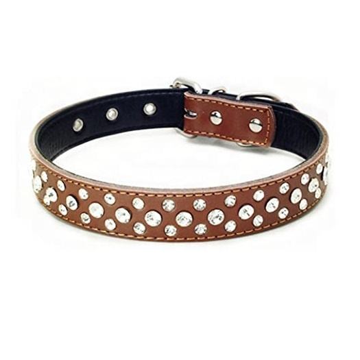 Collares de perro genuinos hechos a mano de cristal Bling cuero collares de perro