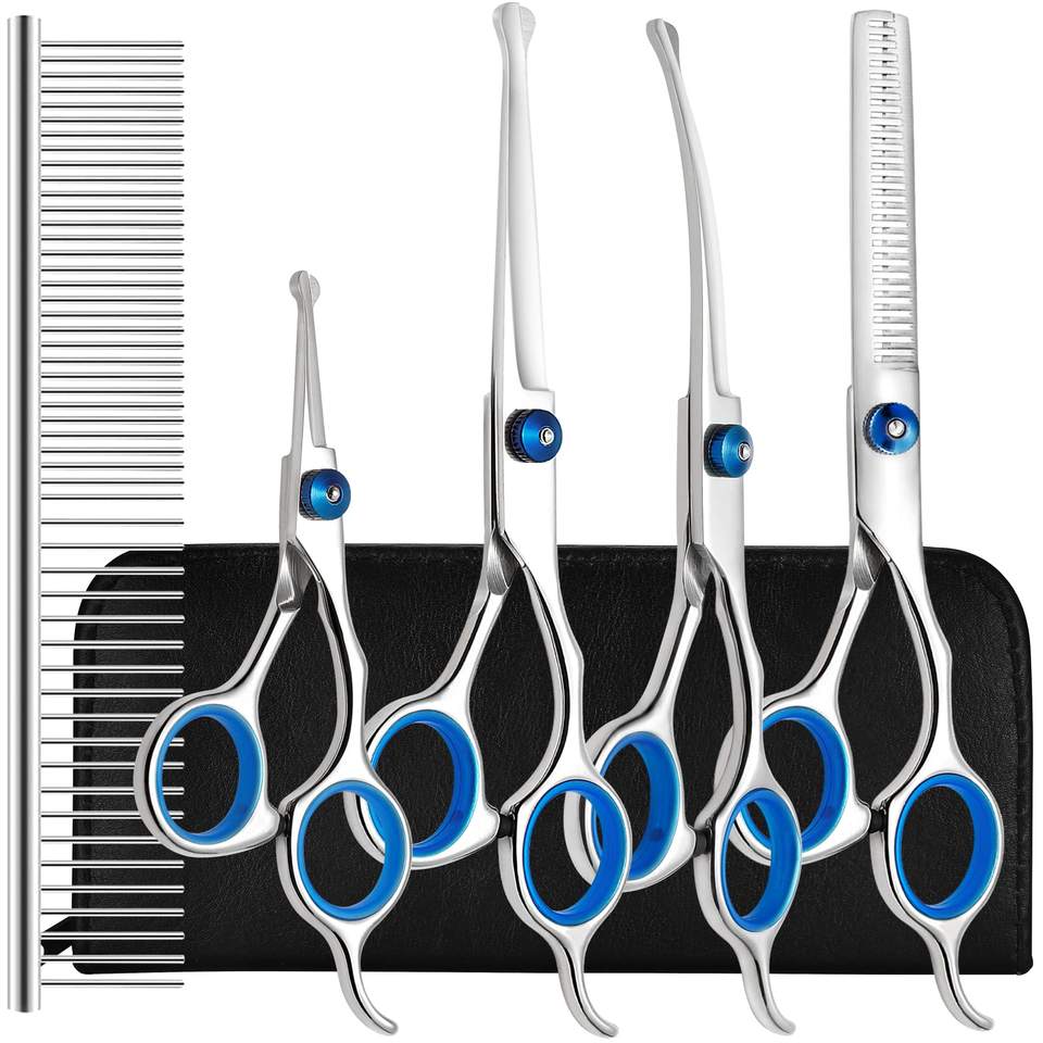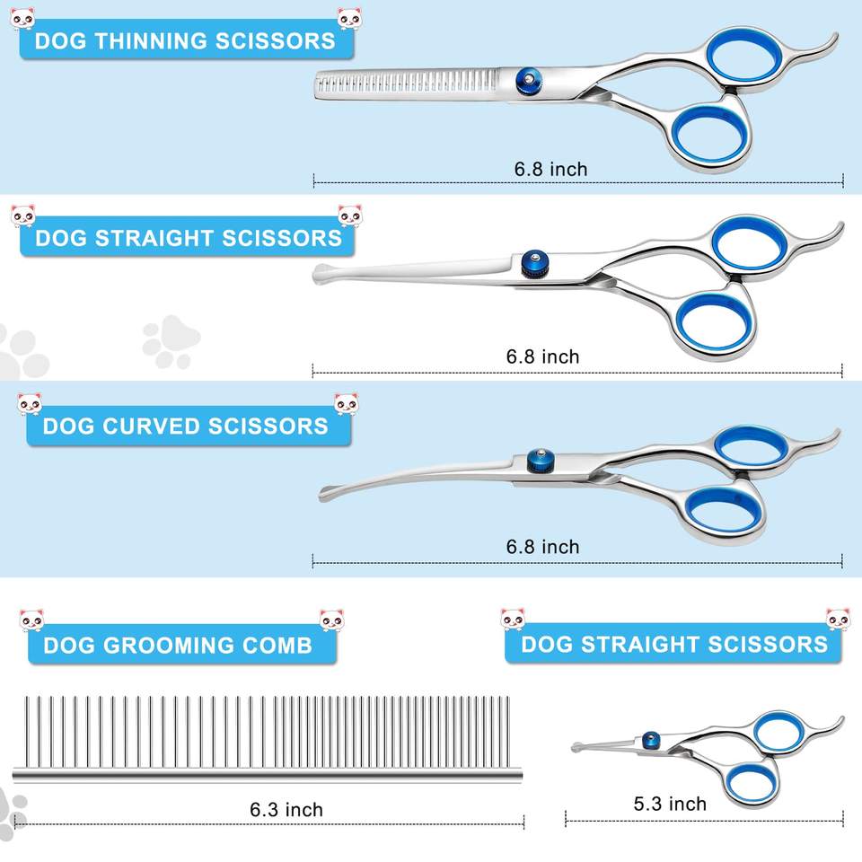 Kit de tijeras de aseo para perros con puntas redondas de seguridad Liren Professional 6 en 1 Tijeras de aseo para perros
