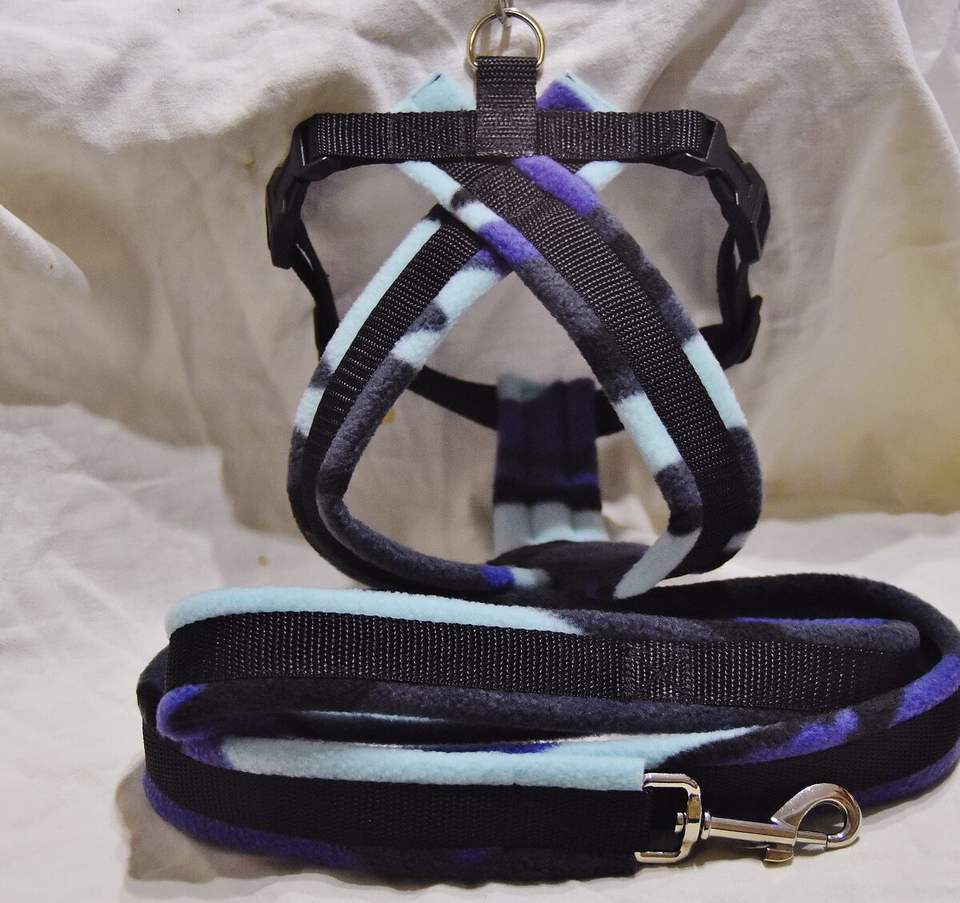 Arnés para Perro con Forro Polar, Camuflaje Urbano Azul, Negro y Gris con Correas a Juego