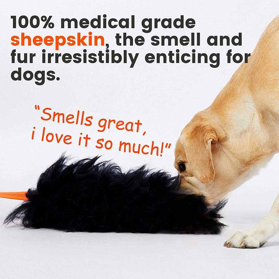 Cuerda Bungee Chaser para perro, juguete 100% piel de oveja, olor a oveja, Correa Tug para todas las edades