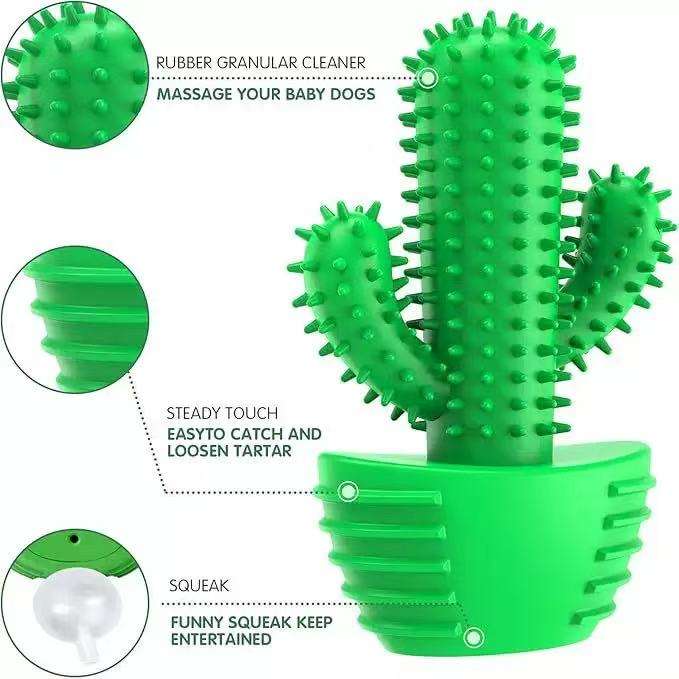 Cepillo de Dientes para Perros, Juguete Masticable de Goma con Forma de Cactus, Regalos de Cumpleaños para Mascotas