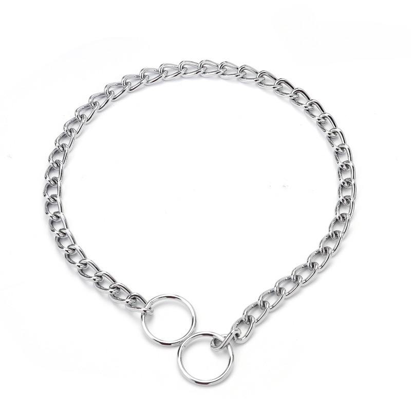 Collares de entrenamiento para perros, cadena de Metal, collares para perros, collares ajustables para mascotas con correa, patrón sólido para pasear perros