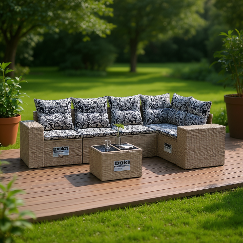 Conjunto de Sofás de Jardín Doki, Ratán Gris, Diseño Contemporáneo con Cojines para Exteriores