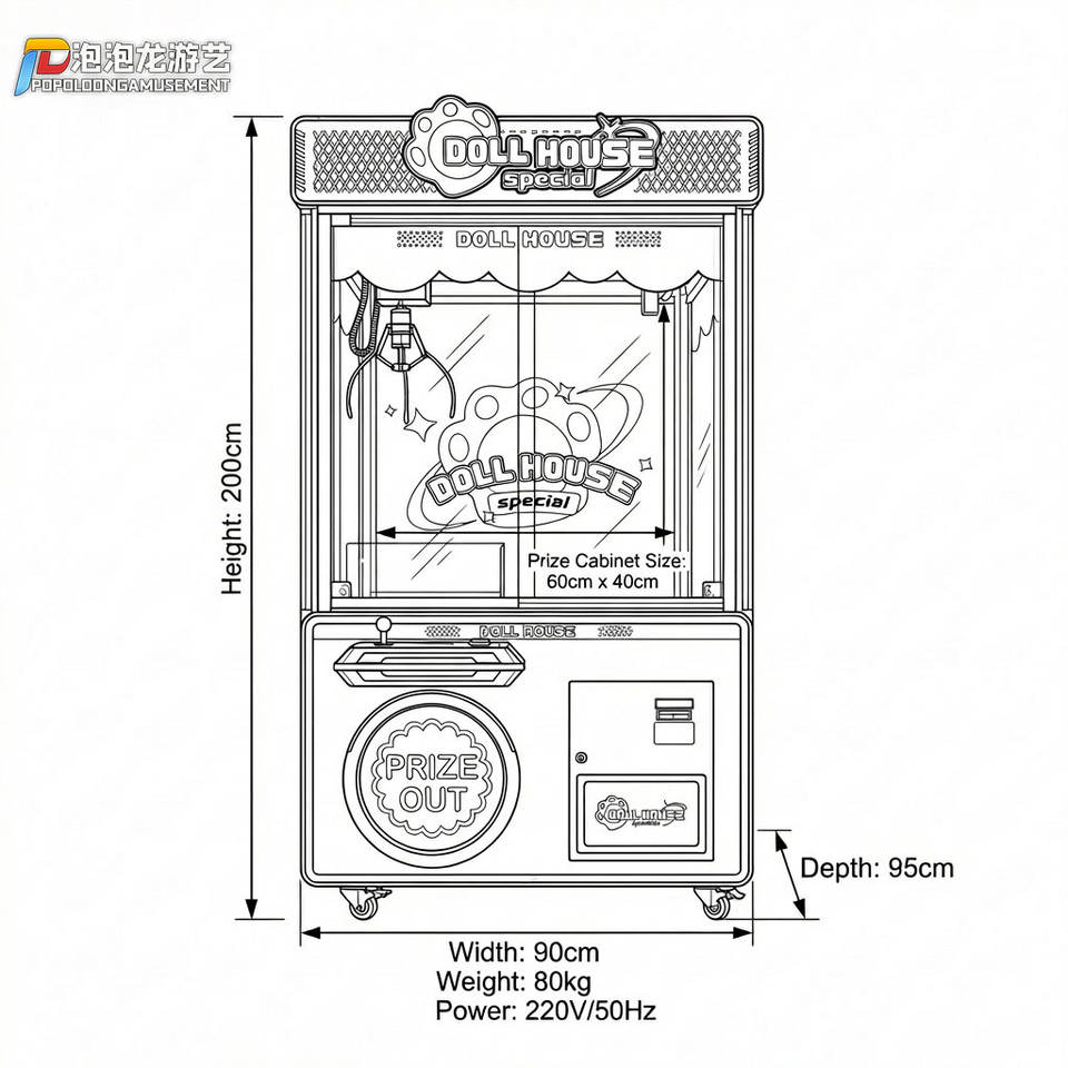 Máquina de Juegos Arcade de Muñecas, Operada con Monedas, Capturador de Premios, LED, Comercial, Metálica, con Idiomas Japonés/Español/Inglés