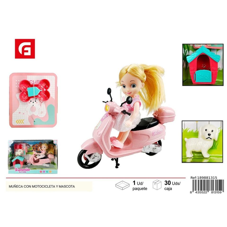 Muñeca con moto y mascota-Muñeca Juguetes