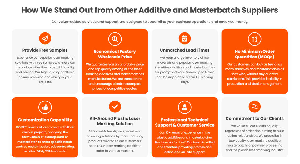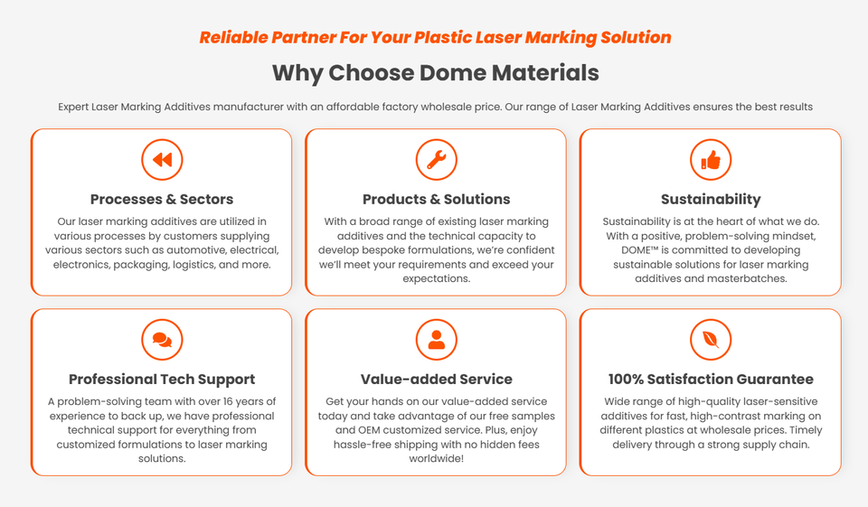Aditivos láser de domo para piezas moldeadas de marcado de plástico mejorado Agente auxiliar químico para PP PA PE TPU ABS Marcado de plástico