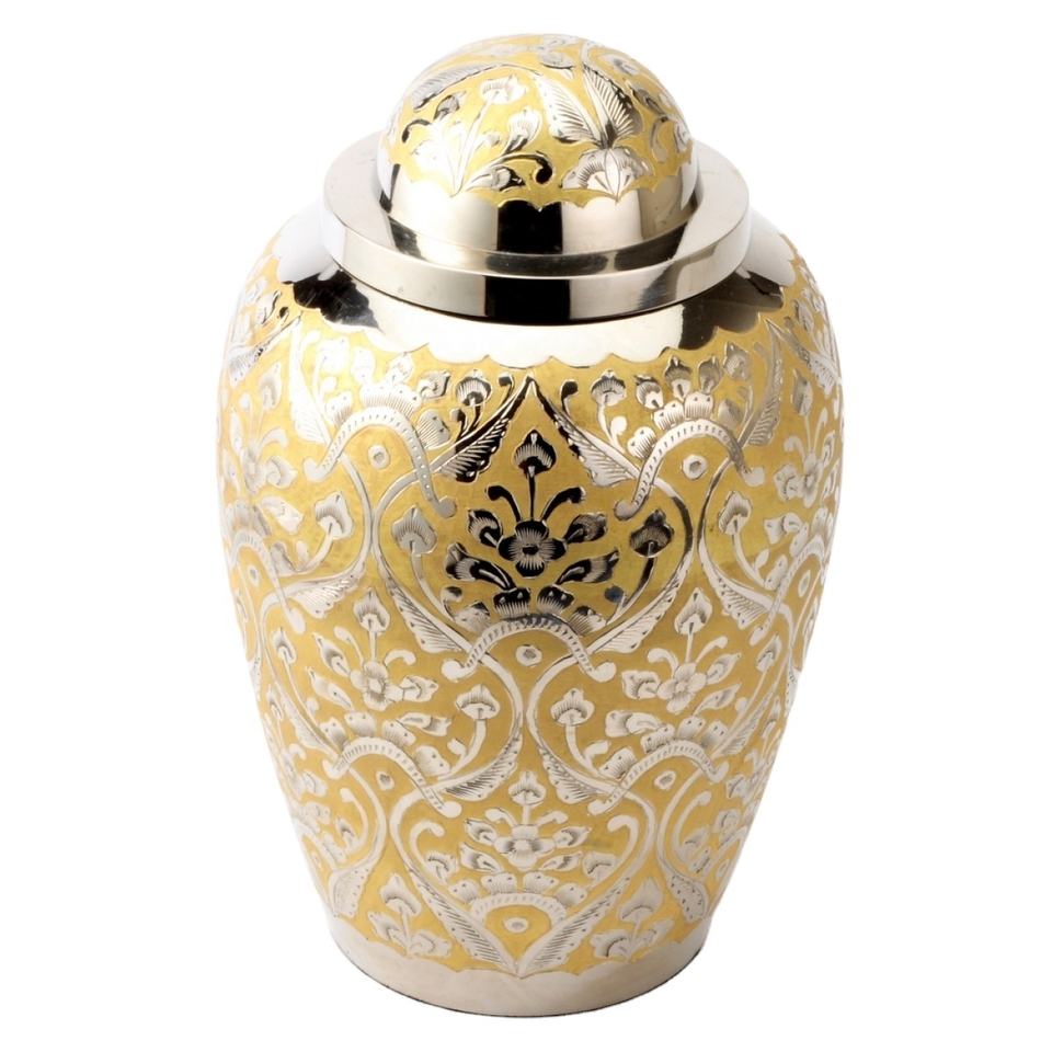 Urnas de cremación de diseño superior de cúpula con talla completa para cenizas humanas Urna conmemorativa funeraria de metal duradero para servicios de entierro