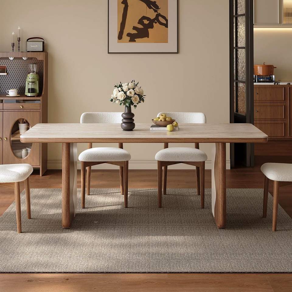 Dongshi Solid Wood Dining Table Rectangle Stable Combination Furniture For Home Use