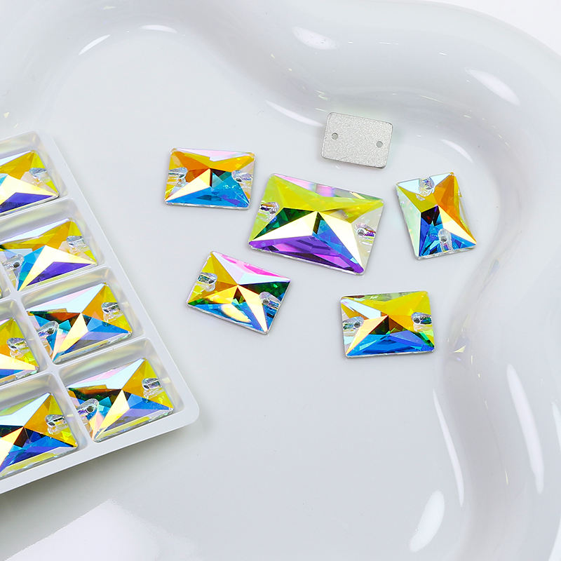 Cristales de Dongzhou, parte posterior plana en forma de rectángulo, diamantes de imitación para coser, venta al por mayor, cuentas de cristal sueltas, ropa, zapatos, accesorios Diy
