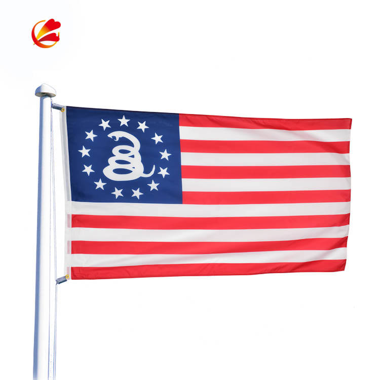 Bandera de Gadsden de Estados Unidos de doble cara con diseño personalizado, impresa digitalmente en poliéster, para promoción libertaria.