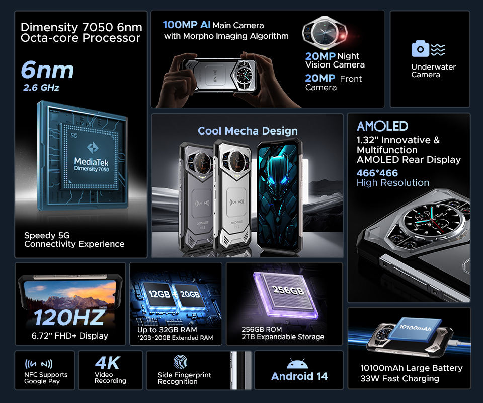 Característica:brújula, A prueba de polvo, Reconocimiento facial, NFC, Visión nocturna, Impermeable
