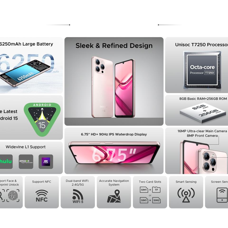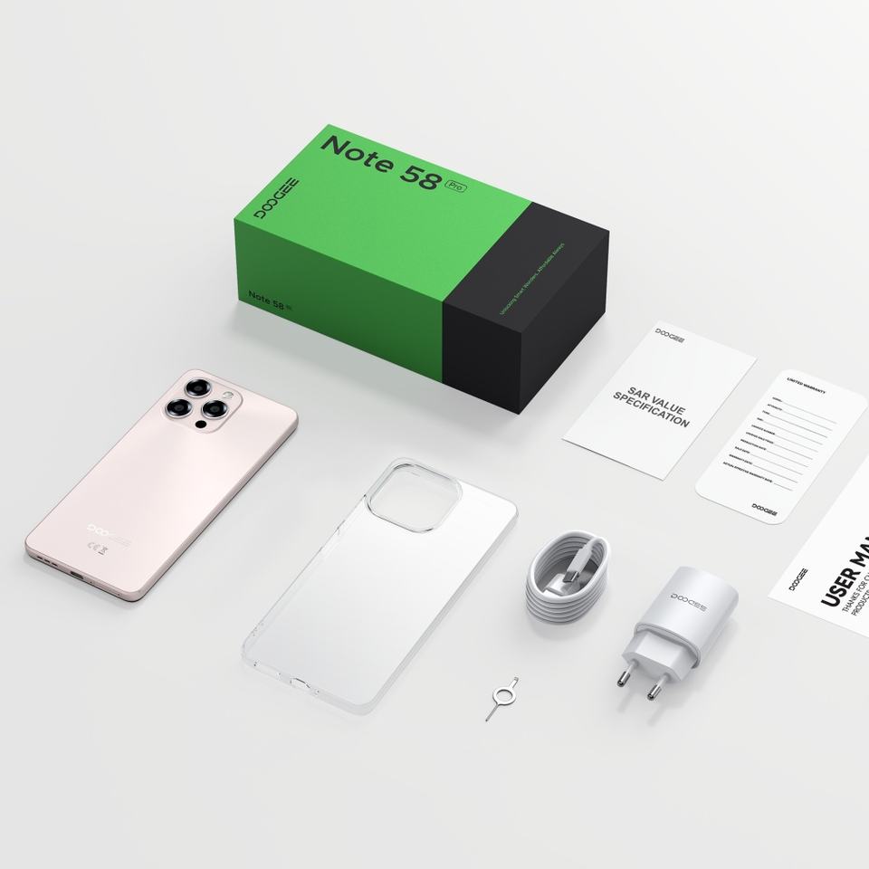 Teléfono Inteligente Doogee con Cámara de 8+16MP, Android 15, NFC, Google Play, Batería de 6250mAh, Pantalla de 6.75 Pulgadas, 8+256GB, Doble 4G, Modelo Note 58 Pro