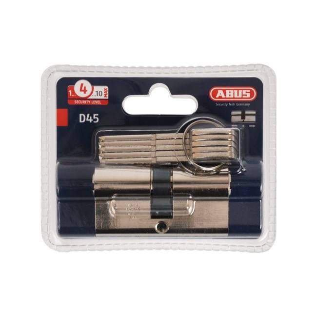 Cilindro de puerta ABUS D45 25/25, llaves de 5 hoyuelos, níquel