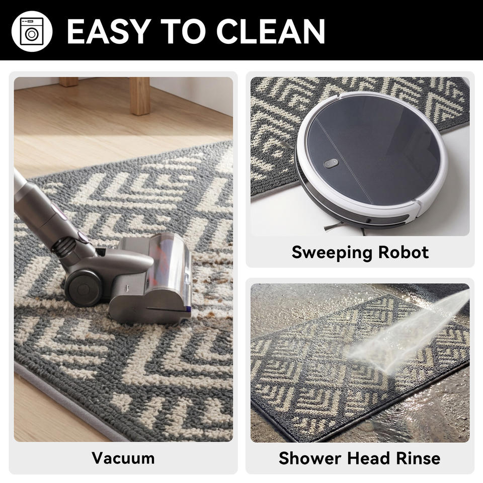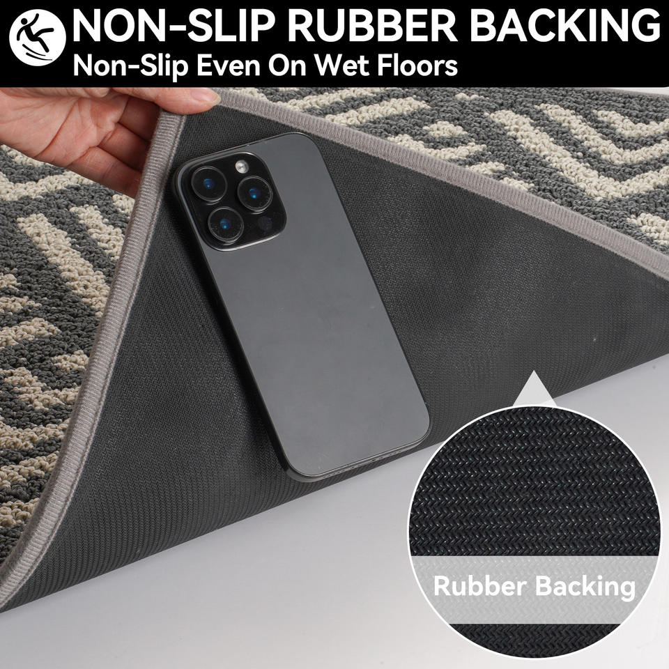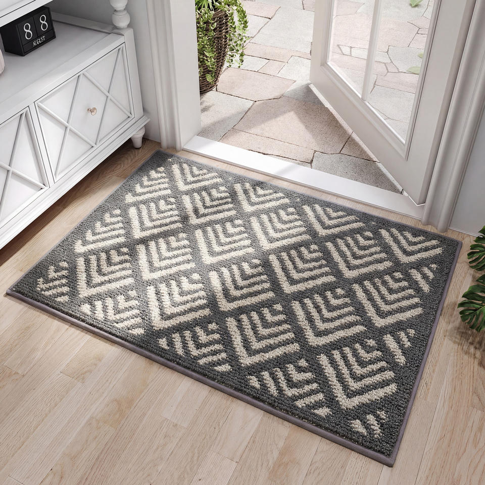 Alfombra de Entrada Antideslizante con Patrón Geométrico Rectangular, Alfombra de Entrada para Uso Doméstico, Fibra de Poliéster, Limpieza Localizada