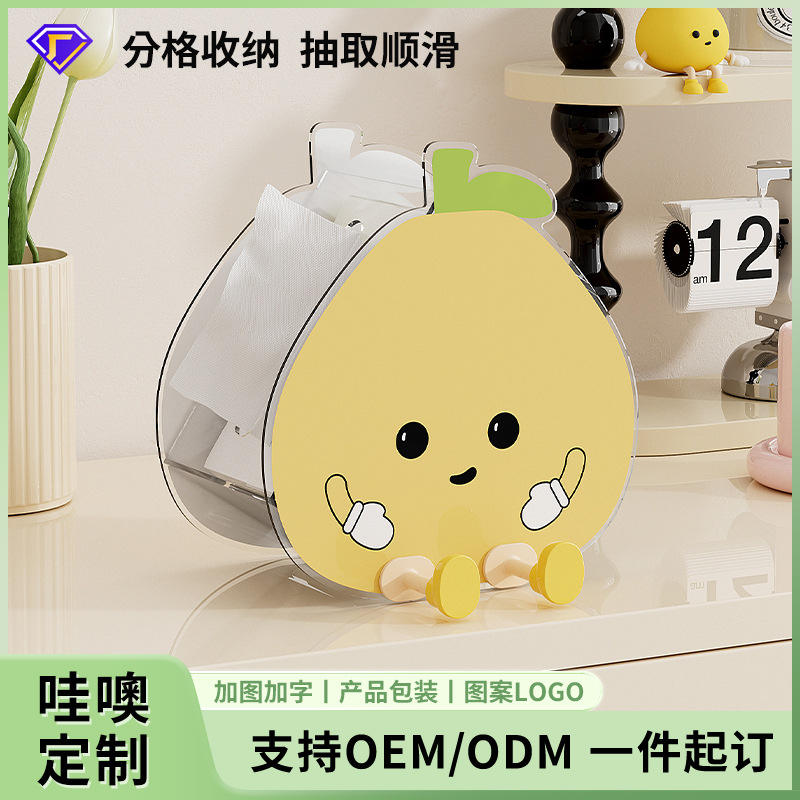 Caja de pañuelos Dopamine de gran capacidad con compartimentos divididos, organizador de almacenamiento de dibujos animados para el hogar, sala de estar, dormitorio, baño