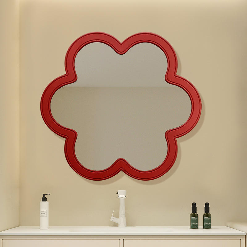 Mueble de baño con lavabo integrado de cerámica y madera maciza estilo crema Dopamine, espejo de pared tipo nube.