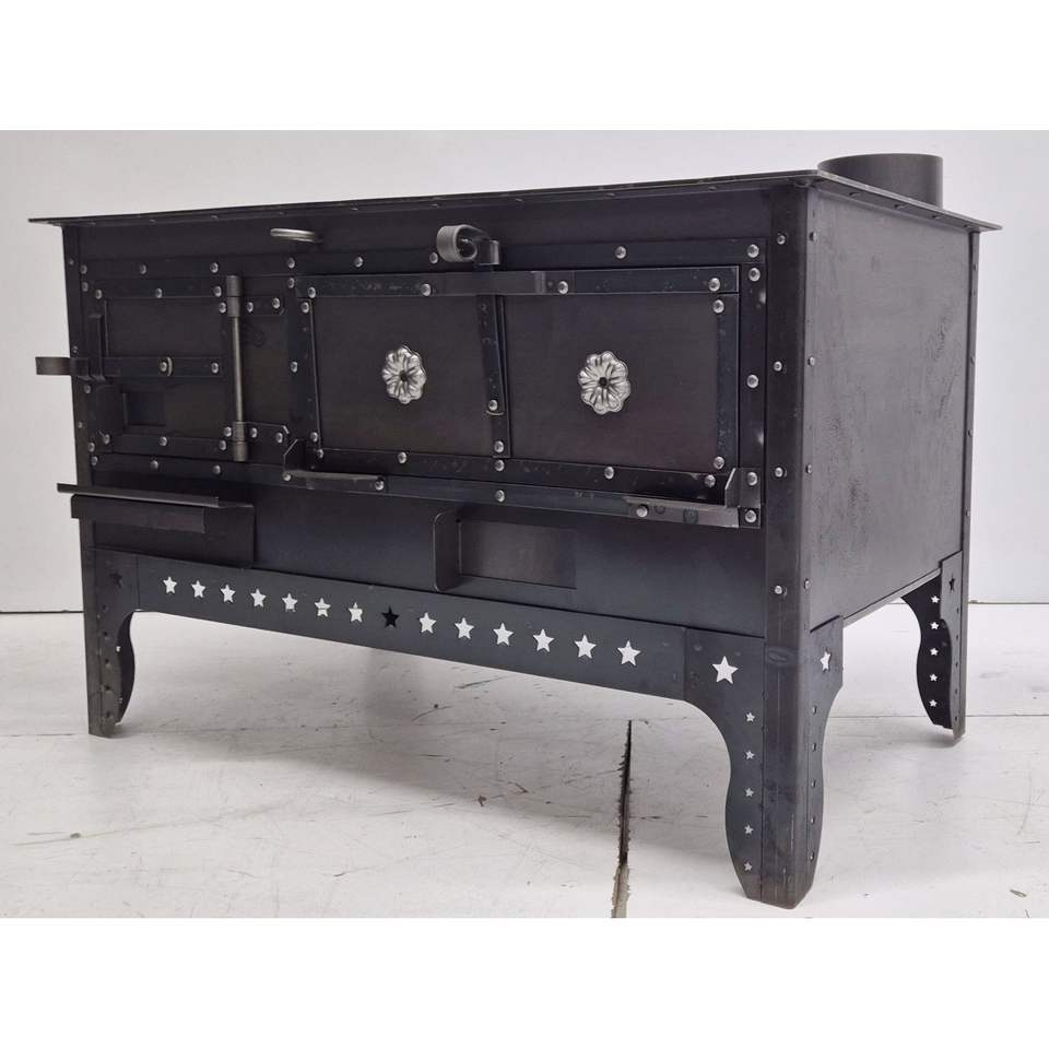 Estufa de Cocina Dorello Black Sea con Chimenea de Vidrio y Estufa de Leña para Calefacción con Leña