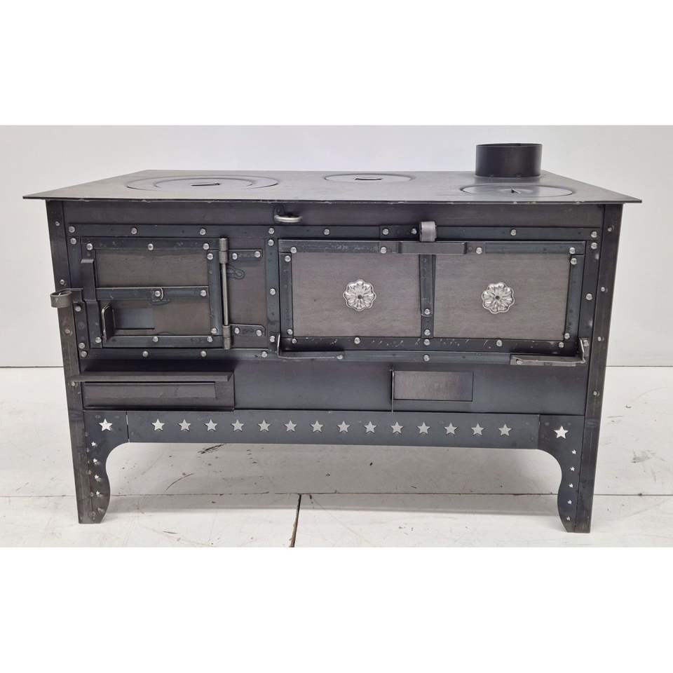 Estufa de Cocina Dorello Black Sea con Chimenea de Vidrio y Estufa de Leña para Calefacción con Leña