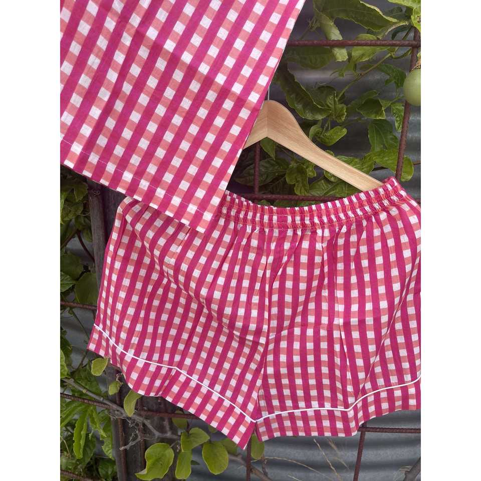 Pijamas Doris Day Rosa a Cuadros, Tejido Suave y Transpirable, Talla Única con Cintura Elástica y Cierre de Cordón para Verano e Invierno