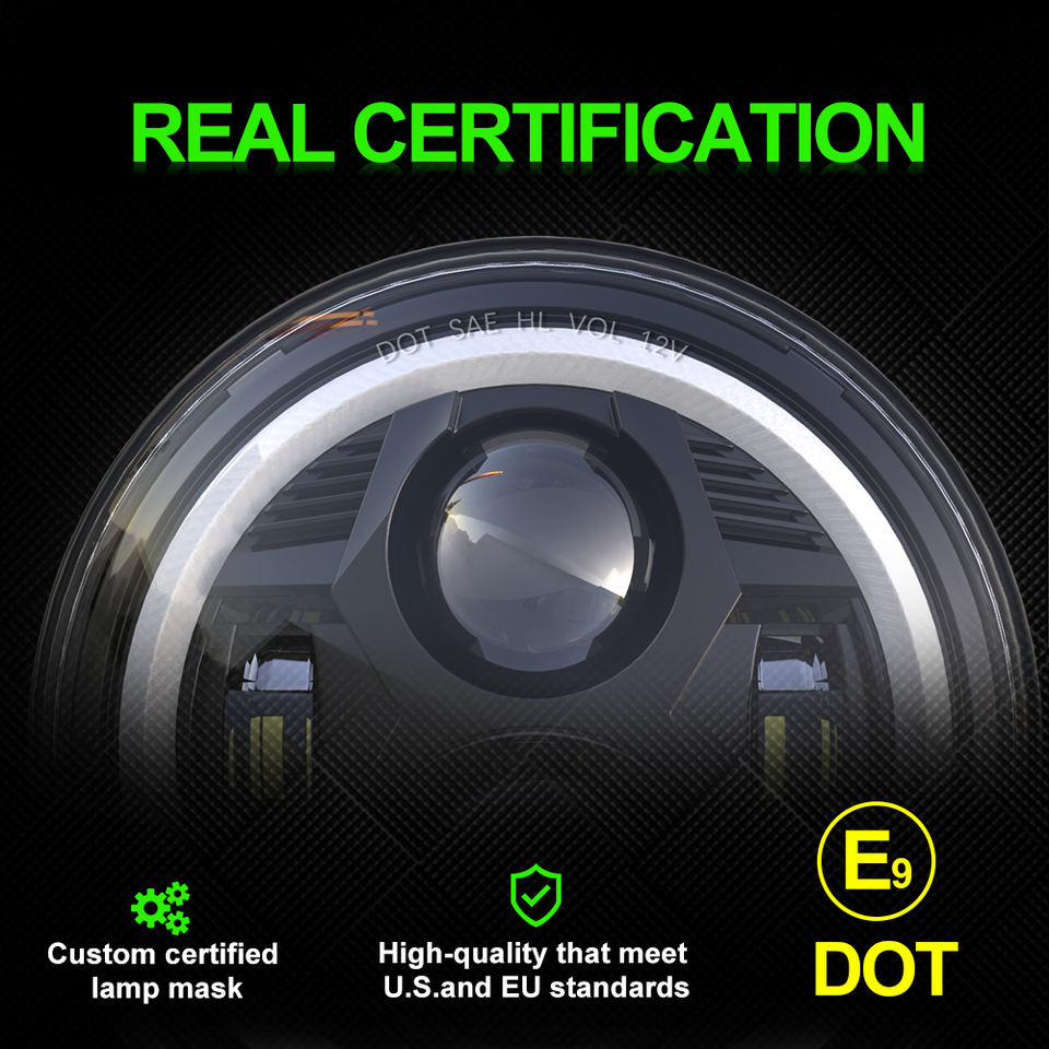 Faro redondo Led para motocicleta, luz de giro de Ojos de Ángel DRL, Halo, RGB, 50W, 7 ", aprobado por Dot, E9, para coches y Jeep