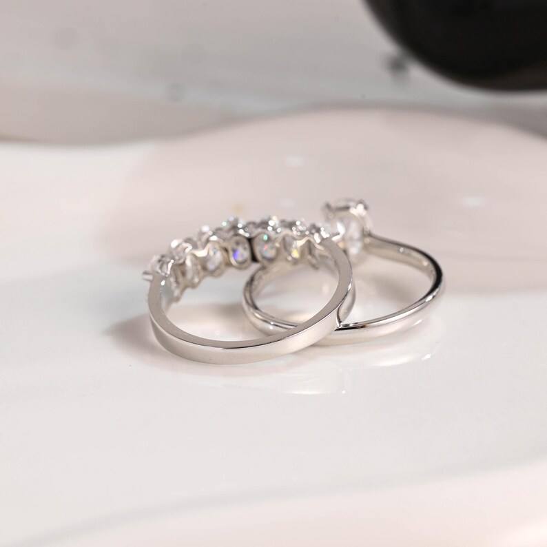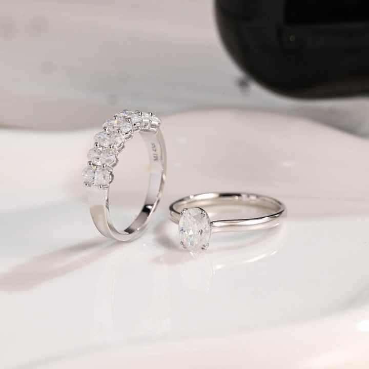Anillo de solitario de moissanita Original de corte ovalado fino de plata 925 de doble banda con banda de media eternidad regalo de fiesta de aniversario para esposa