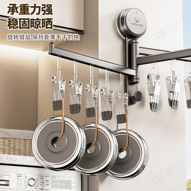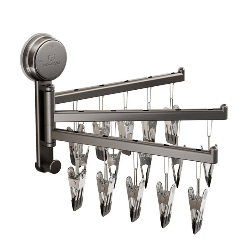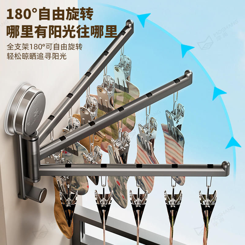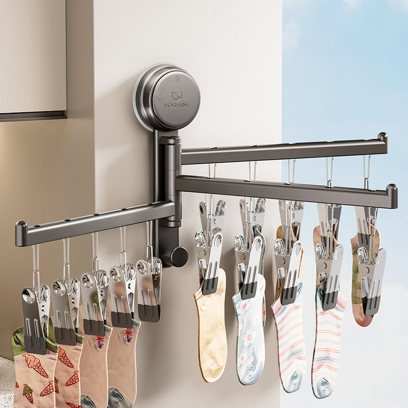 Tendedero de pared de doble barra con ventosa y clips para calcetines, ropa y uso en el baño