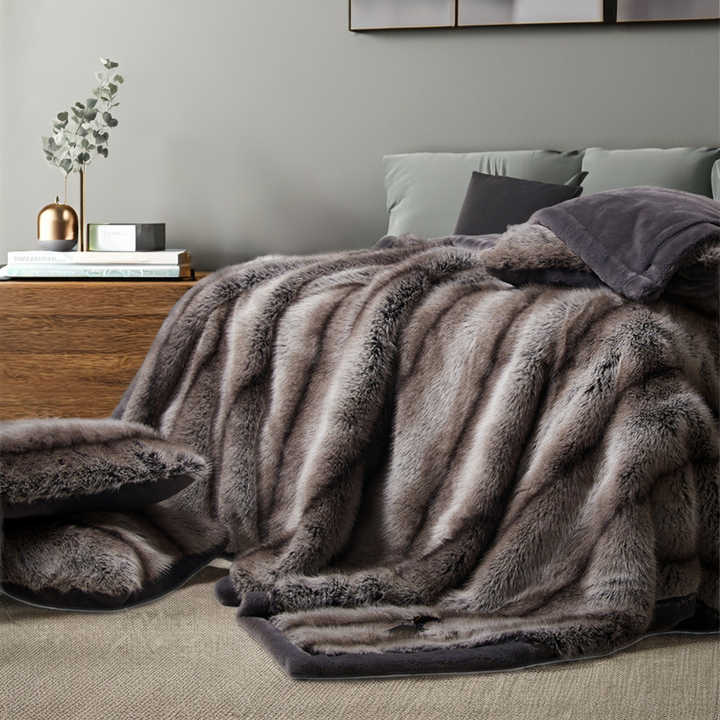 Juego de ropa de cama doble regalo de felpa King queen size verano conejo piel sintética manta de lana para el invierno