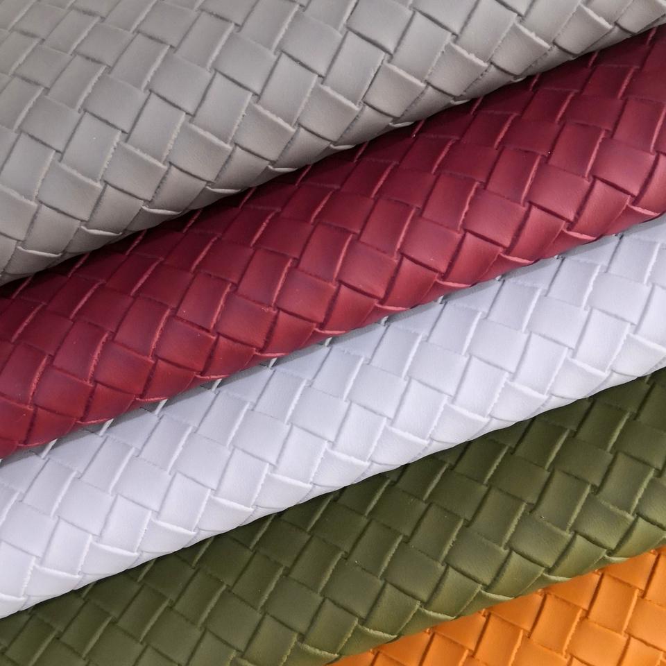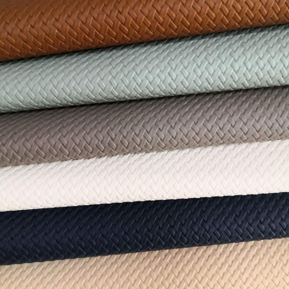 Patrón de tejido a cuadros con espalda cepillada doble, cuero sintético de PVC de imitación de 1,1mm para bolsos, bolsos, fabricación de muebles y gorra de cesta de zapatos