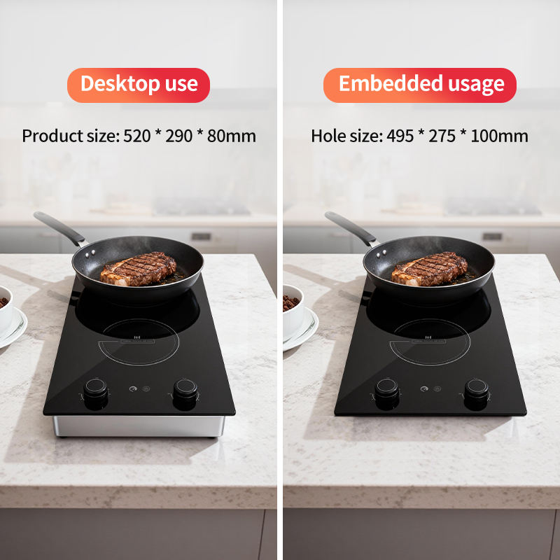 Cocina de inducción integrada de doble quemador, grado comercial, ahorro de 30% energía, Cocina Para restaurante, ebullición rápida, certificado ETL