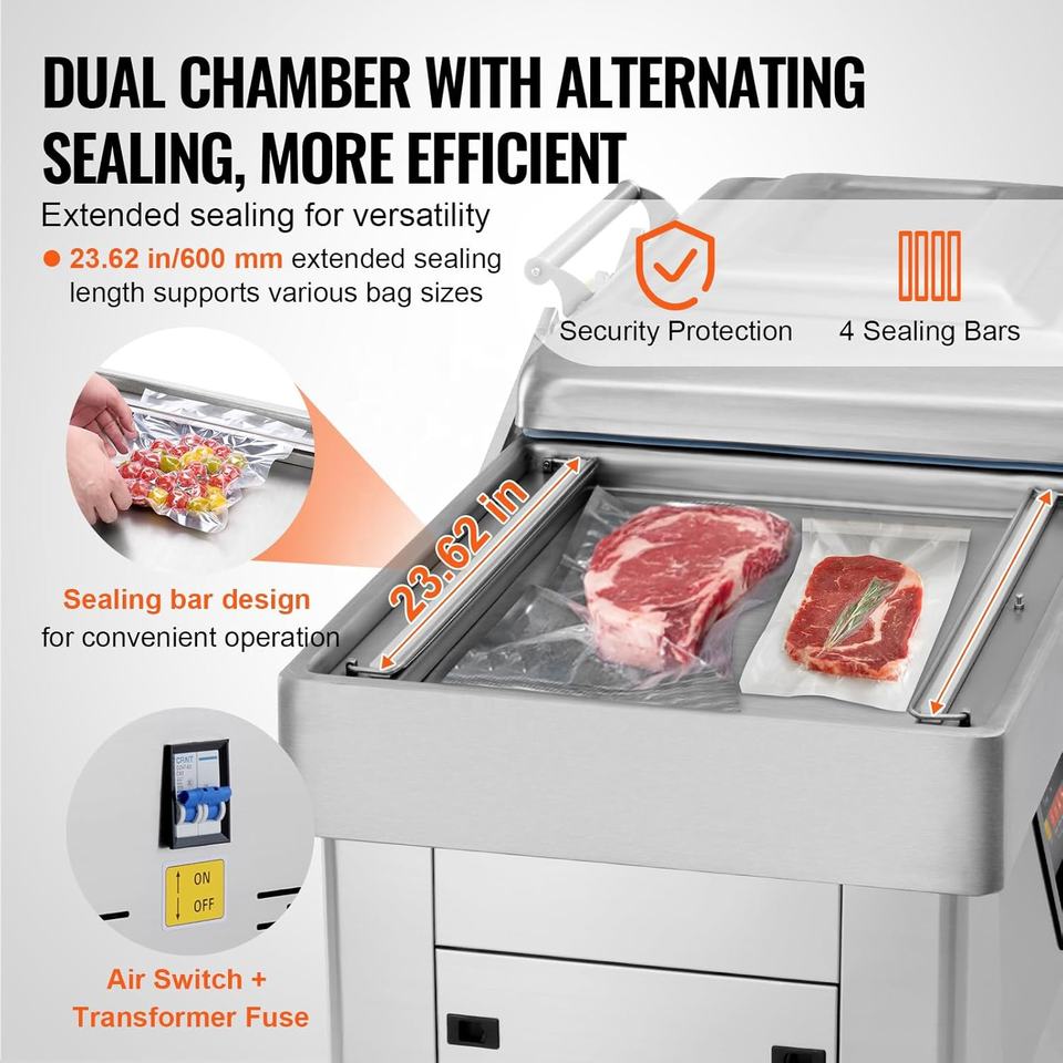 Máquina de envasado al vacío de carne de doble cámara sellador de envasado de pollo al vacío USO COMERCIAL