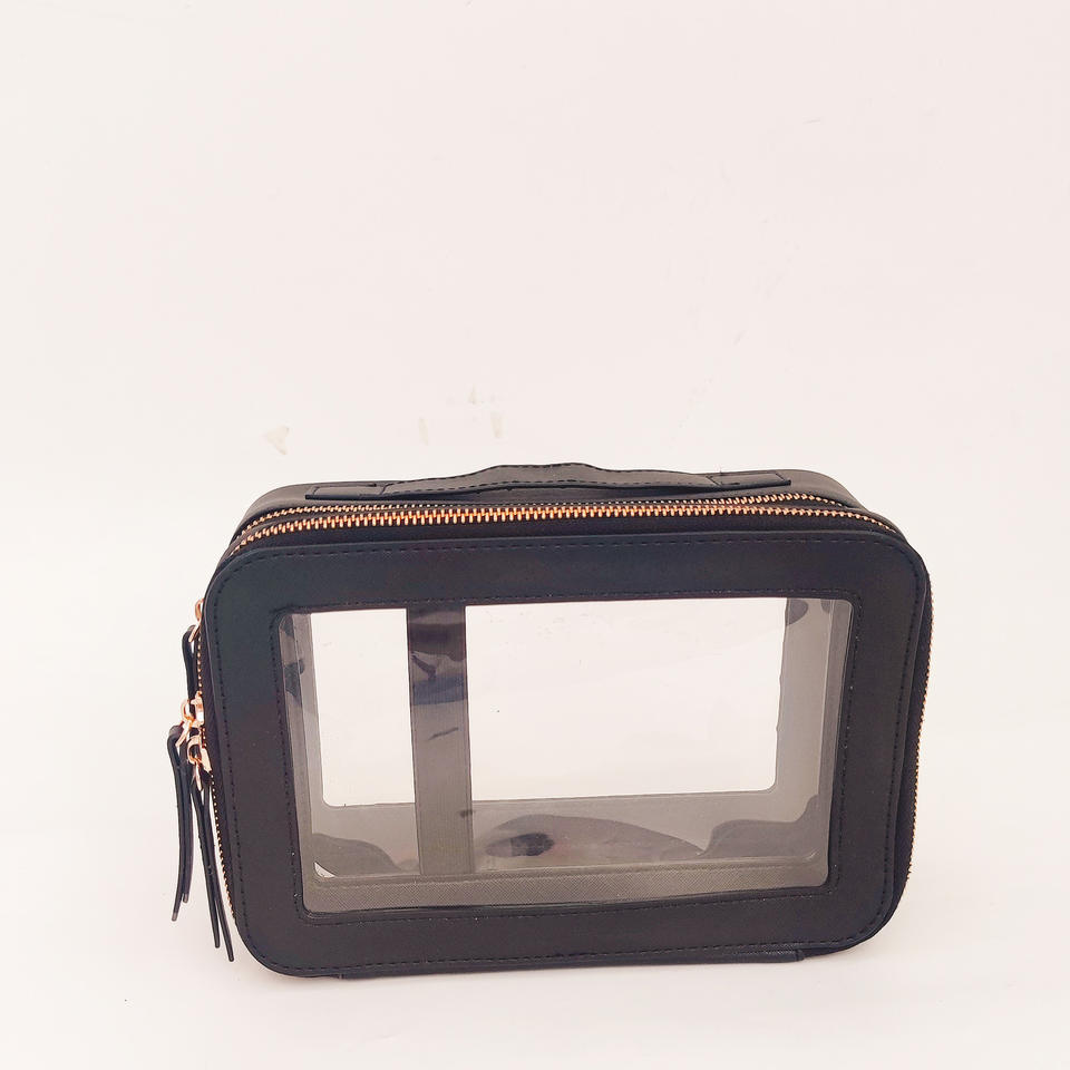 Bolsas de Maquillaje de Gran Capacidad con Doble Compartimento y Cierre, de PVC Transparente, Ecológicas, Reciclables, con Asa Negra Personalizada, Organizador de Cosméticos