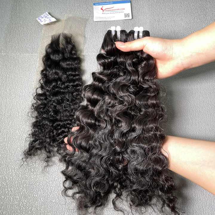 Paquetes de cabello doble dibujado rizo birmano con conjunto de cierre teje camboyano extensiones de cabello crudo brasileño indio peruano virgen