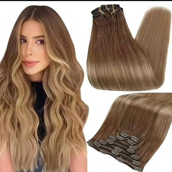 Extensiones de Cabello Humano Ruso de Doble Trama con Clip, Ondulado Natural Ombre, para Cabeza Completa, Suaves, Sin Caída, Sin Enredos, de Proveedores de Cabello