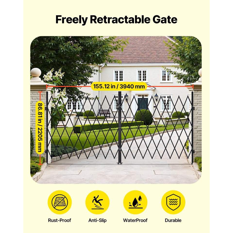 Puerta de Seguridad Plegable Doble con Diseño de Tijera Bloqueable, Ruedas Giratorias de 360 Grados, Barricada Exterior, Puertas Retráctiles de Acero