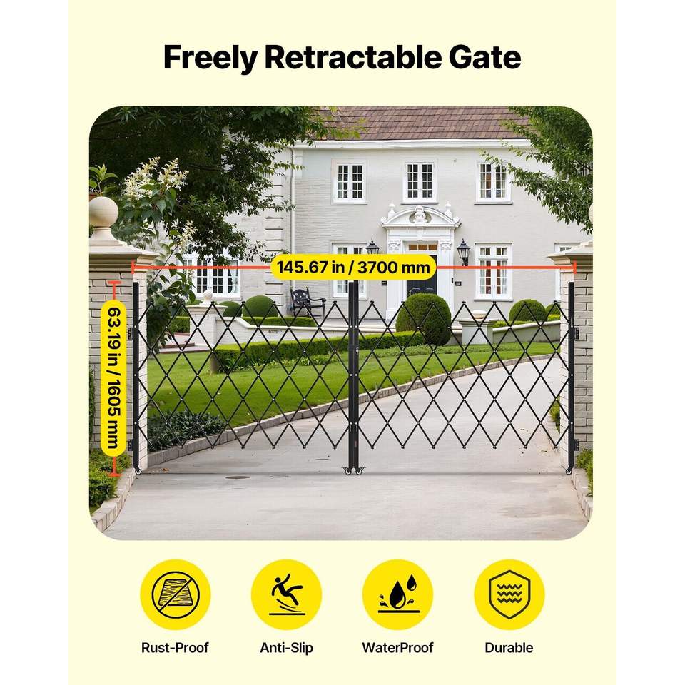 Puerta de Seguridad Plegable Doble con Diseño de Tijera Bloqueable, Ruedas Giratorias de 360 Grados, Barricada Exterior, Puertas Retráctiles de Acero