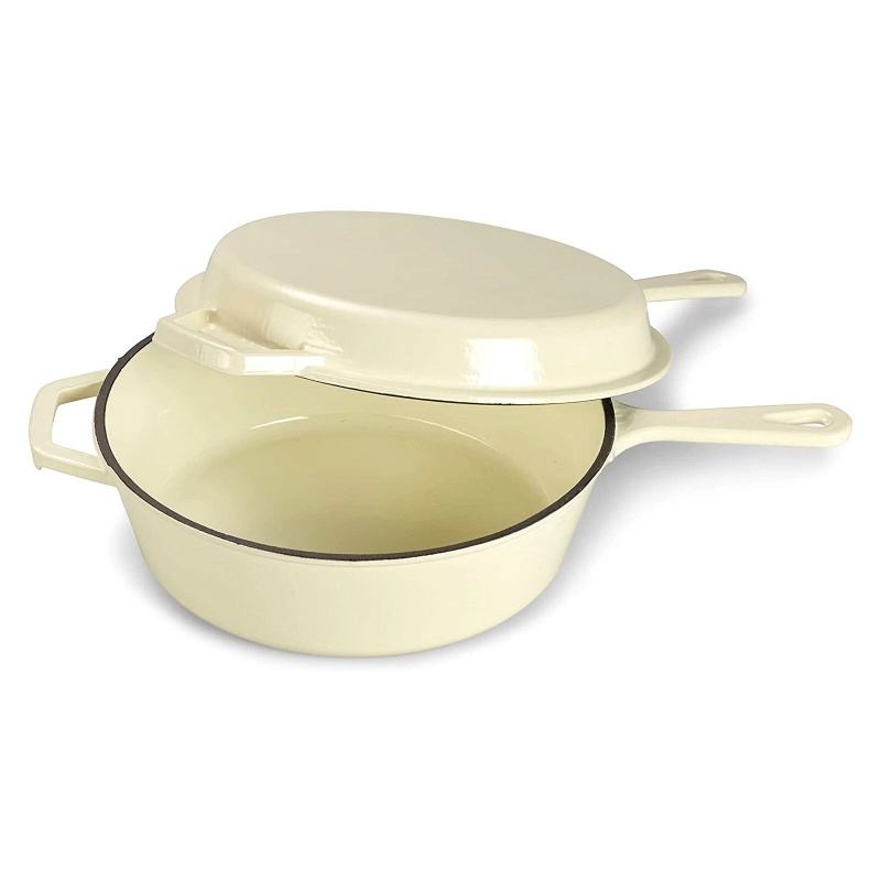 Nombre:Olla de hierro fundido esmaltado 2 en 1 con tapa de sartén