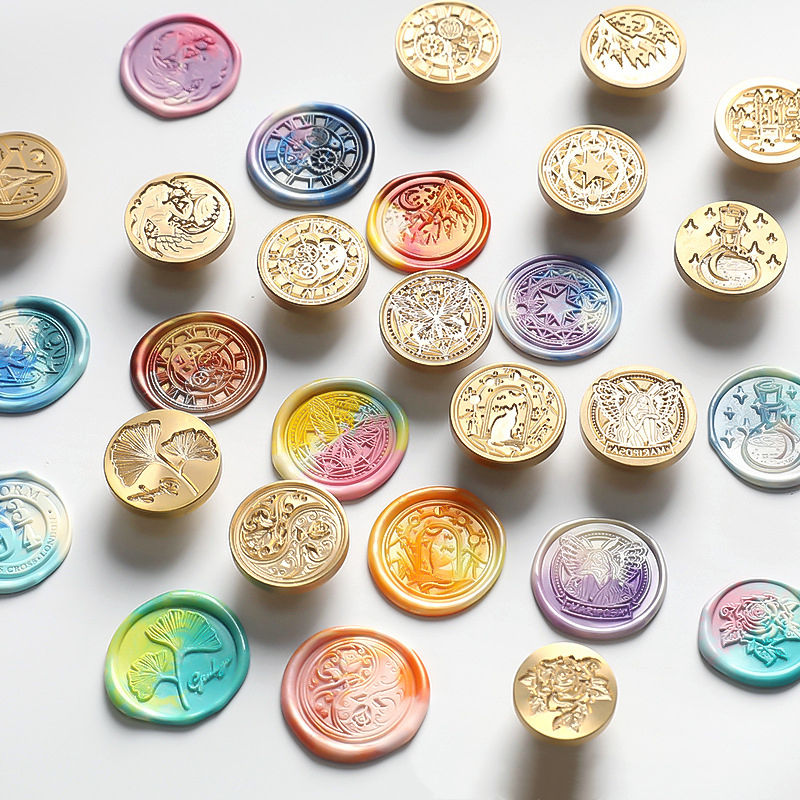 Juego de sellos de cera en relieve, bolígrafo de doble color de feliz, cuchara de pintura notarizada, iniciales de nube de estado de ánimo, comealltime, oro rosa