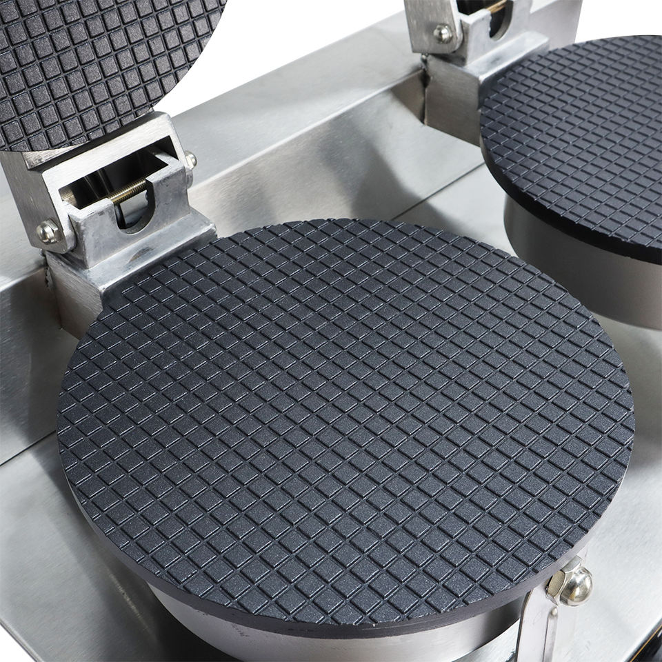 Máquina eléctrica de cono de helado de doble cabezal, máquina de cono de gofres de 2x1200 W con mangas de cono de helado para restaurante, panadería, aperitivos