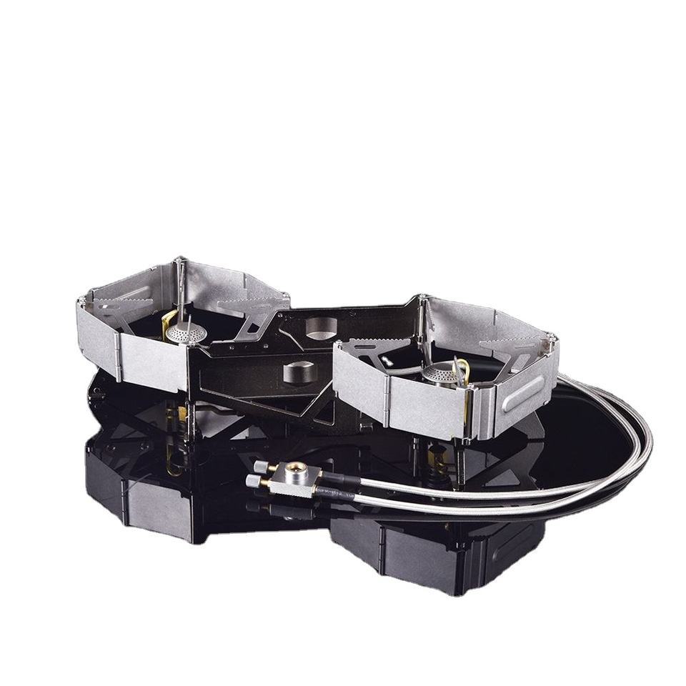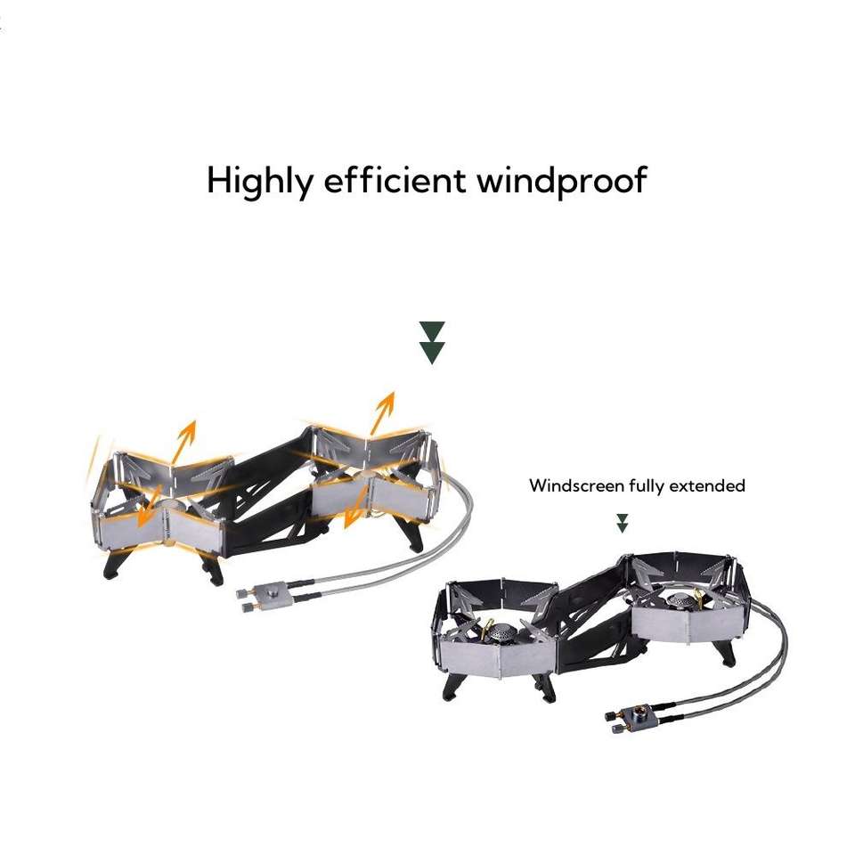 Estufa de mochilero a prueba de viento de doble cabezal, horno portátil para acampar al aire libre, interruptor de fuego, estufa de Gas de Control ajustable gratis