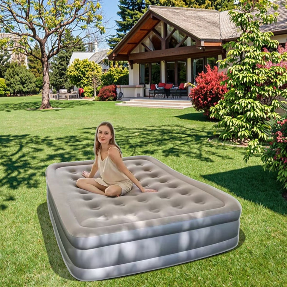 Colchón futón cama de aire inflable Flocado de doble altura con bomba incorporada adecuado para acampar en interiores y exteriores