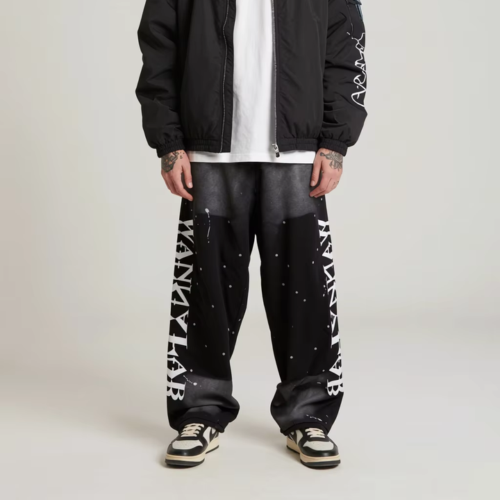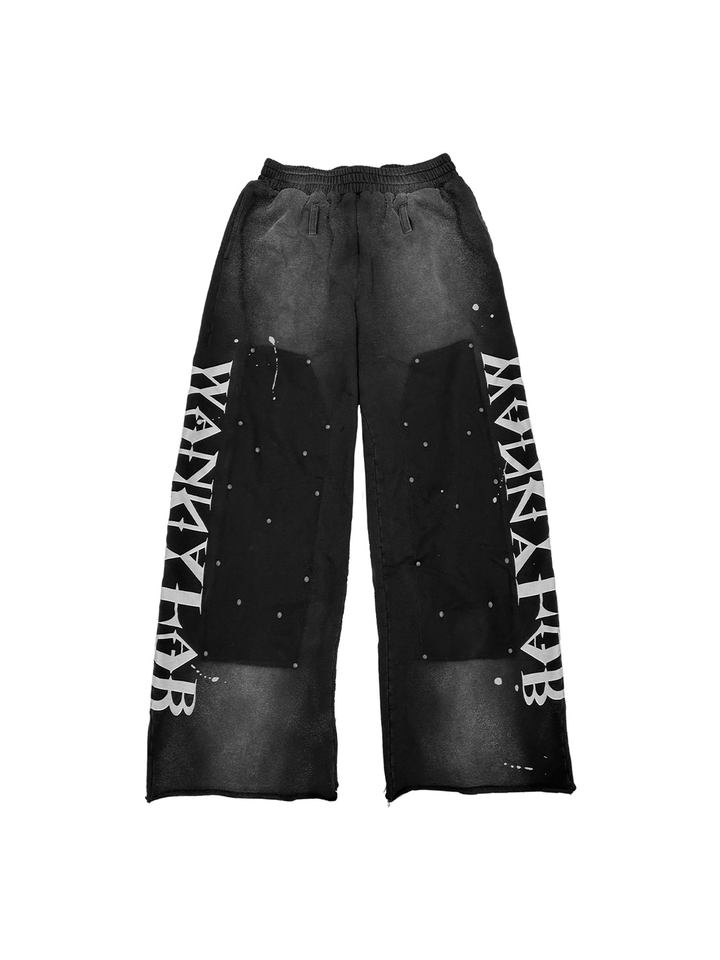 Pantalones de hombre de algodón 100% lavado con doble remache en la rodilla, estilo leñador, dobladillo enrollado, efecto salpicado, vintage, de pierna recta, con detalles de cuero, para correr