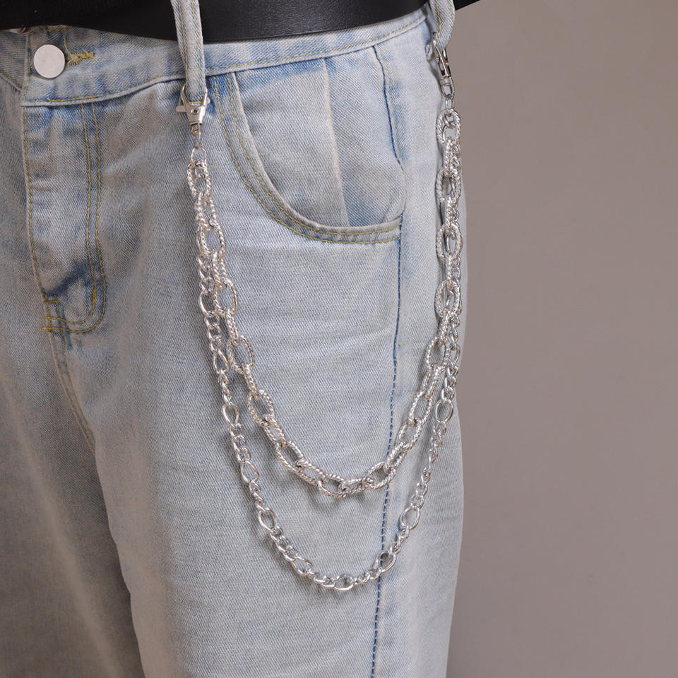 Cadena de Pantalones de Doble Capa con Relieve, Cadena de Cintura de Plata Tibetana Estilo Hip Hop, Diseño Geométrico Informal