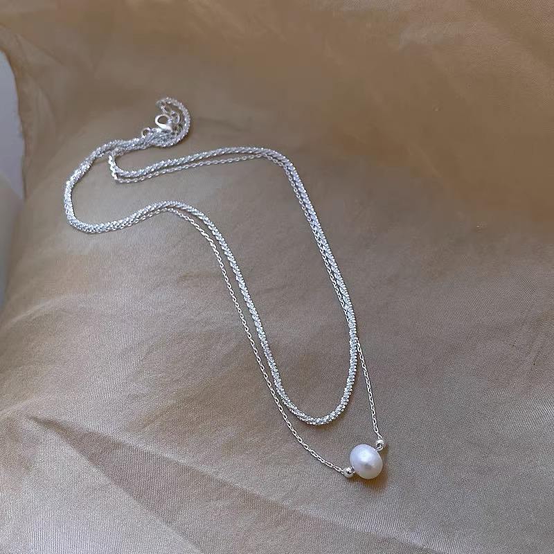 Collar de Perlas de Agua Dulce de Doble Capa para Mujer, Diseño Moderno de Celebridad de Internet, Collar Brillante de Alta Gama