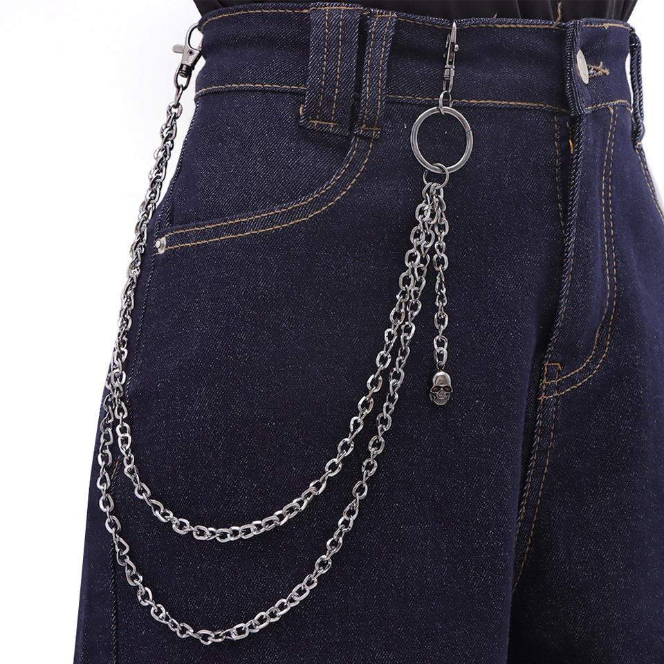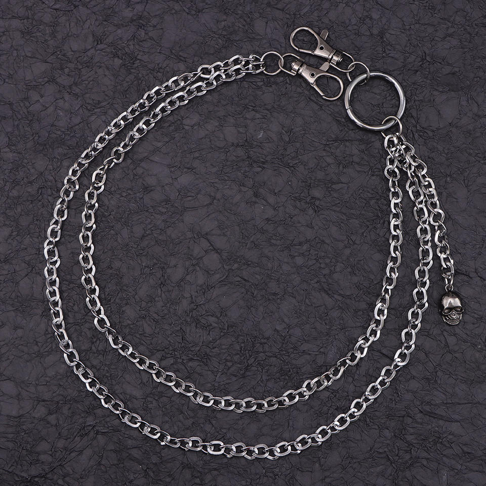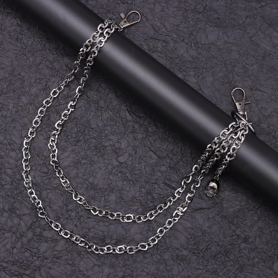 Cadena de cintura de doble capa de metal con colgante de calavera en tono bronce, estilo punk, accesorio urbano para hombre, cadena corporal de moda casual.