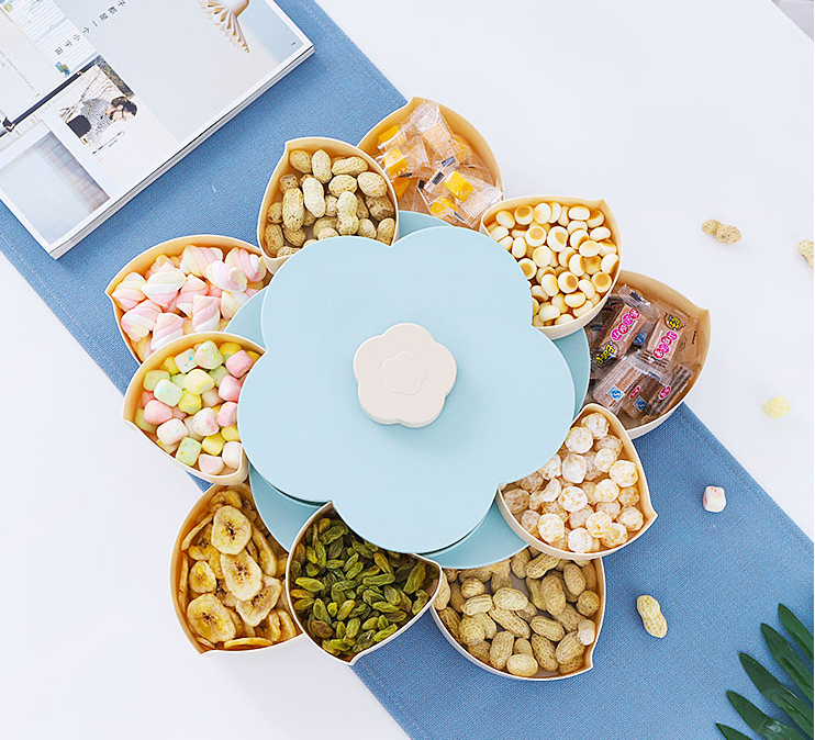 Double layer Petal Rotating Melon Fruit Plate Shaking Sound Snack Plate Creative Storage Plate