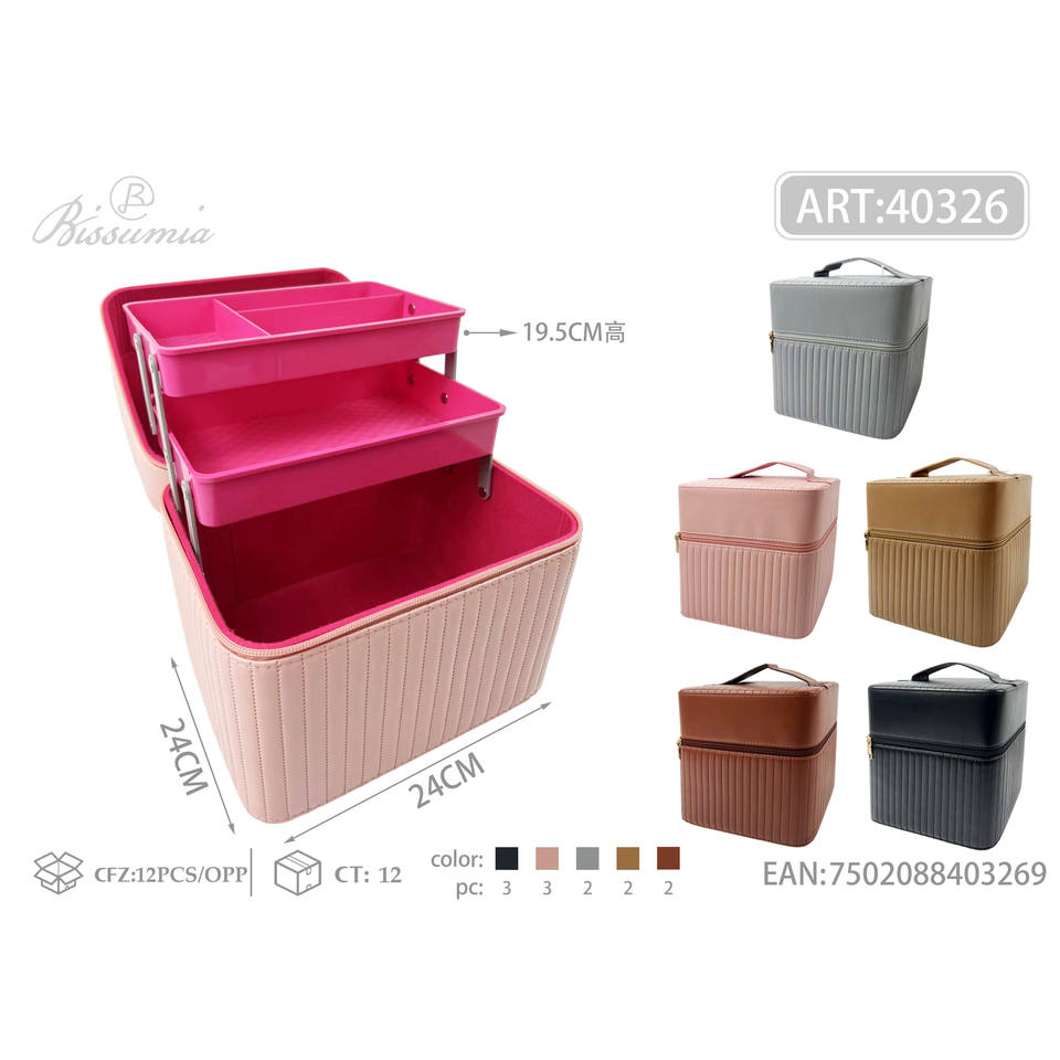 Caja de cosméticos de rayas cuadradas de doble capa 24,5*19*24-para organizar sus elementos esenciales de belleza
